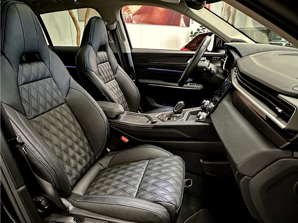 Het Sparkling Black exterieur in combinatie met de unieke lichtgrijze details en 20” velgen geven deze auto een opvallend en premium karakter.