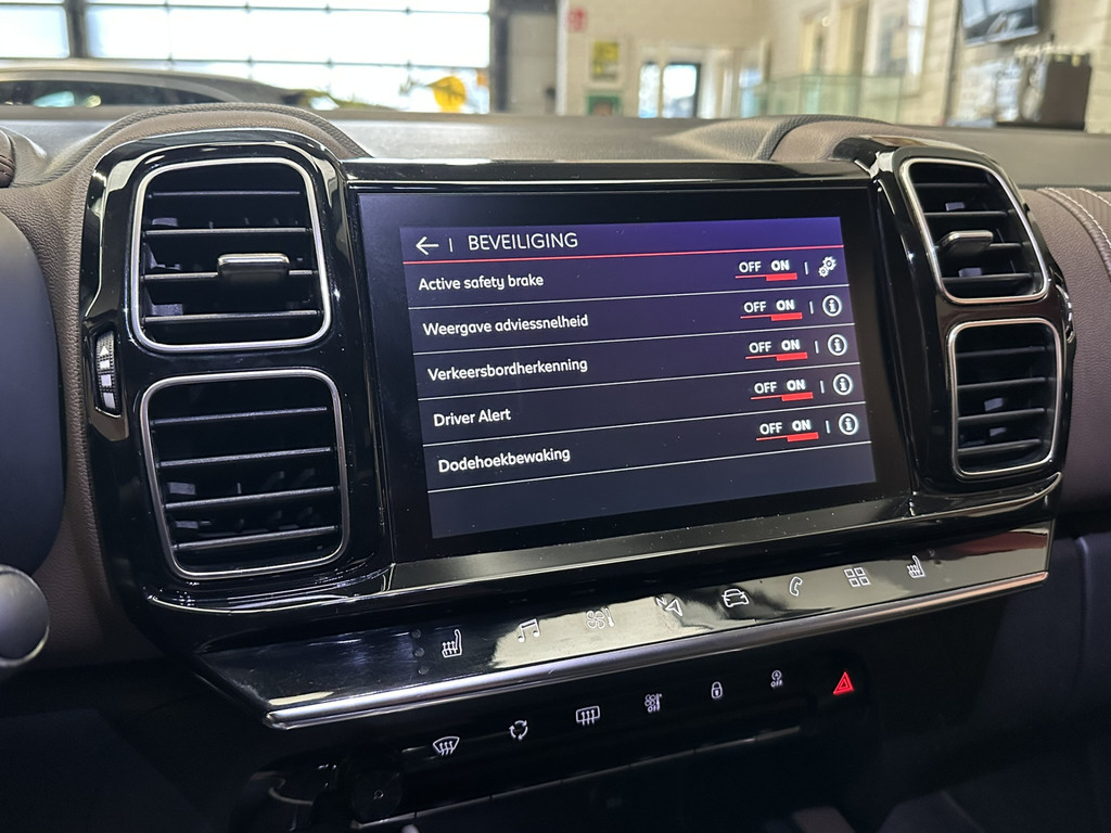Pragmatisch en veilig als deze auto is, beschikt hij over diverse veiligheidssystemen. Een belangrijke bijdrage aan de veiligheid onderweg levert de verkeersbord-detectie in deze CITROEN. Het Lane-keeping systeem garandeert dat u zich niet onverhoeds buiten de lijnen van de rijstrook begeeft. Rijdt een ander voertuig in uw dode hoek dan waarschuwt het systeem met een signaal. In deze CITROEN vinden we verder een forward collision warning system, hill hold functie, brake assist, vermoeidheidsherkenning en bandenspanningcontrolesysteem.